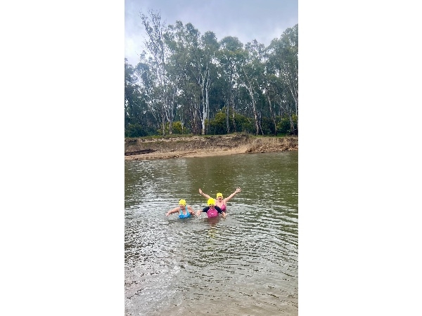We did it!! Yesterday, in howling winds, torrential rain and gorgeous yellow caps, we hurled ourselves into the freezing waters of the Murray River. Woo hoo!!!