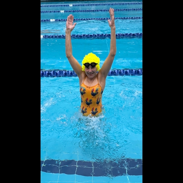 Swimming with my friend Bronwyn, a fellow daffodiller