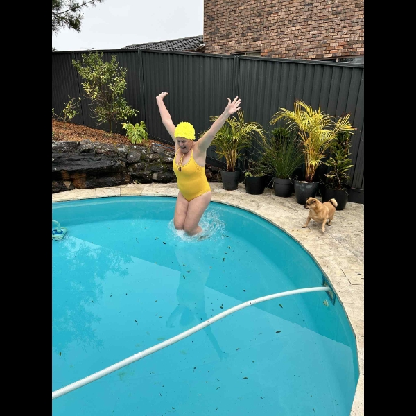 3,2,1 JUMP! Thanks to Karen for letting me use your pool and meat thermometer 🌡️ to record a chilly 10 degree dip this morning.