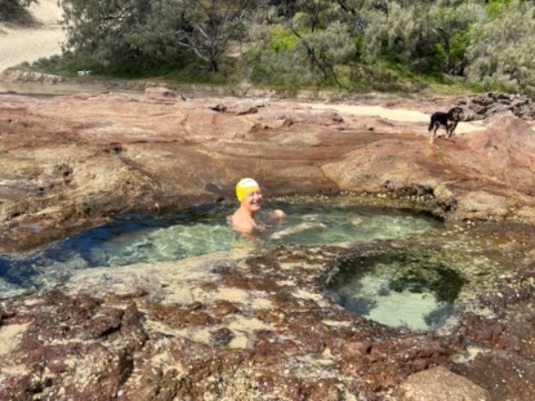 First Dip at South Gorge on Minjerribah -Nth Stradbroke Island.