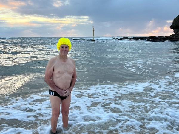Today the weather is fine in Nambucca Heads air temperature 2c so off for the morning plunge. Sunrise hidden behind a large off shore cloud bank, still a beautiful day ahead. Plunge today dedicated to family and friends who are Prostate Cancer sufferers or survivors.