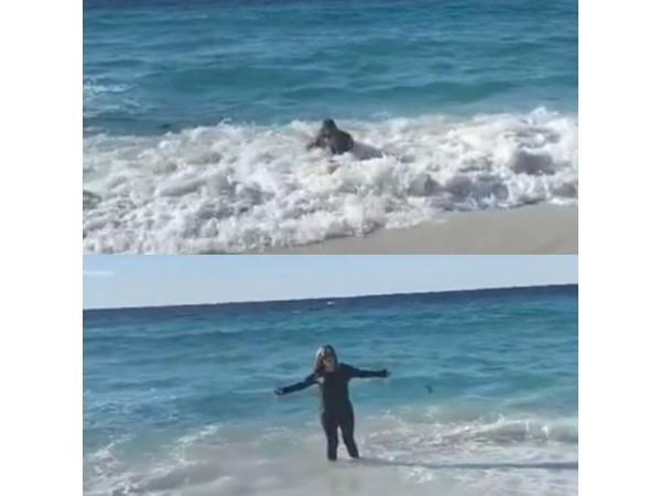 "its not how far you fall, its how you get up' This was me just "testing the water" with my feet in my full work uniform while my daughter got the camera ready. I turned, fell in a hole and went down fully clothed! We laughed all the way home.