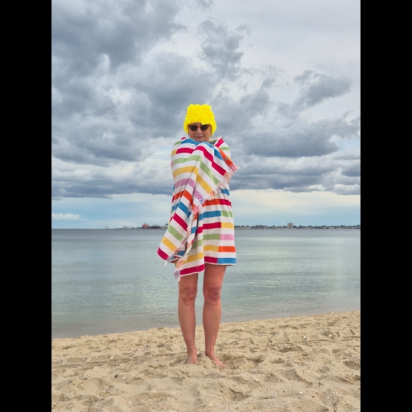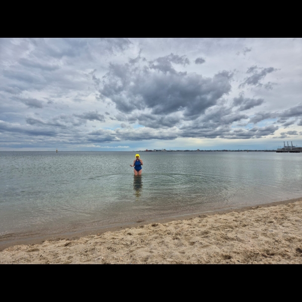 Did a plunge in Port Phillip Bay.... walked into the water from Port Melbourne Beach. 11.1 C was pretty chilly....but the day was fine, so coming out to 19 C in the winter sunshine helped to warm me up pretty quickly.