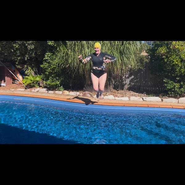 My first and second dip today 6/8/25 with my 3 Granddaughters cheering me on in their swimming pool.