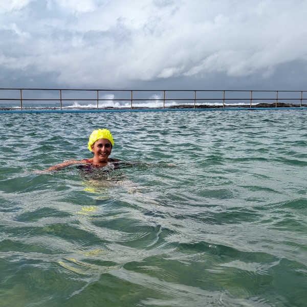 The water initially feels freezing cold, it's hard to breath and all you want to do is get out. Everything starts to hurt by about ep seconds and then after about minute things shift. The water feels warm, your skin is buzzing, breathing starts to regulate and being in the cold ocean pool water begins to feel nice.... You just have to keep moving.