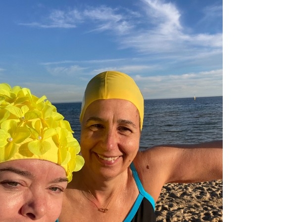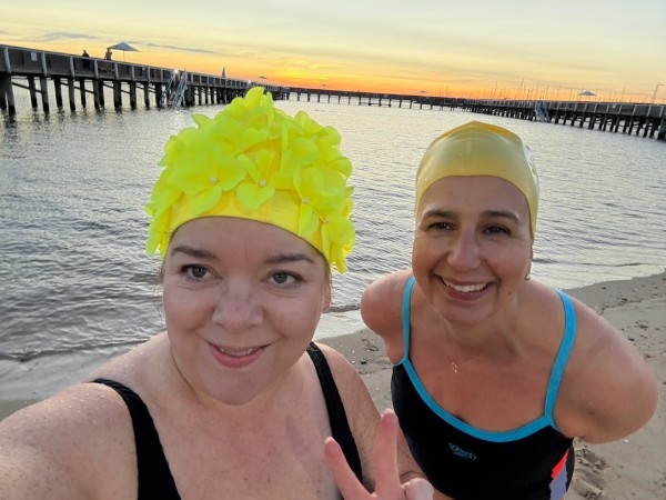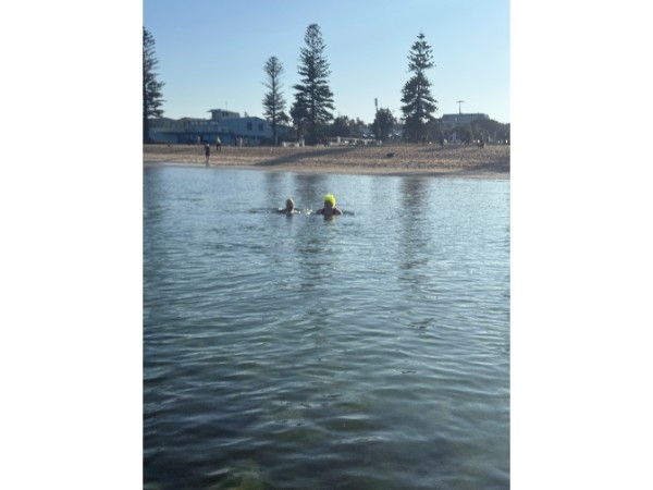 Plunging into the cold, very cold water at Elwood. No hot water showers here
