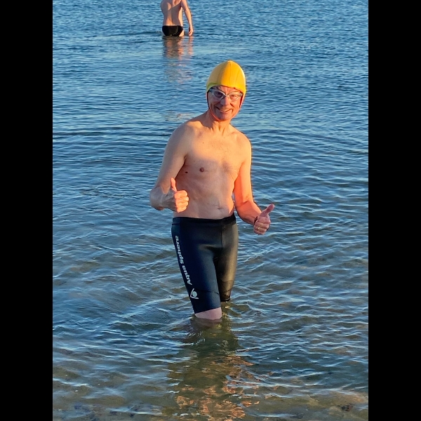 4th day in a row for a cold dip and just 2 metres short of 800m swim at 798m. 10°C water temp. 20 mins before hitting the water I was tucked up in bed and once in the water wondering “In heaven’s name, what am I doing?”I know if I was laid up receiving treatment for cancer I’d give anything to experience the exhilaration of the cold beautiful sea. Sadly many face this challenge of treatment hoping that this round of chemo will do it. That’s why it’s important to donate .1 in 2 of us are likely the ‘C’ word diagnosis at some time but thankfully due to research, new cures are more common.